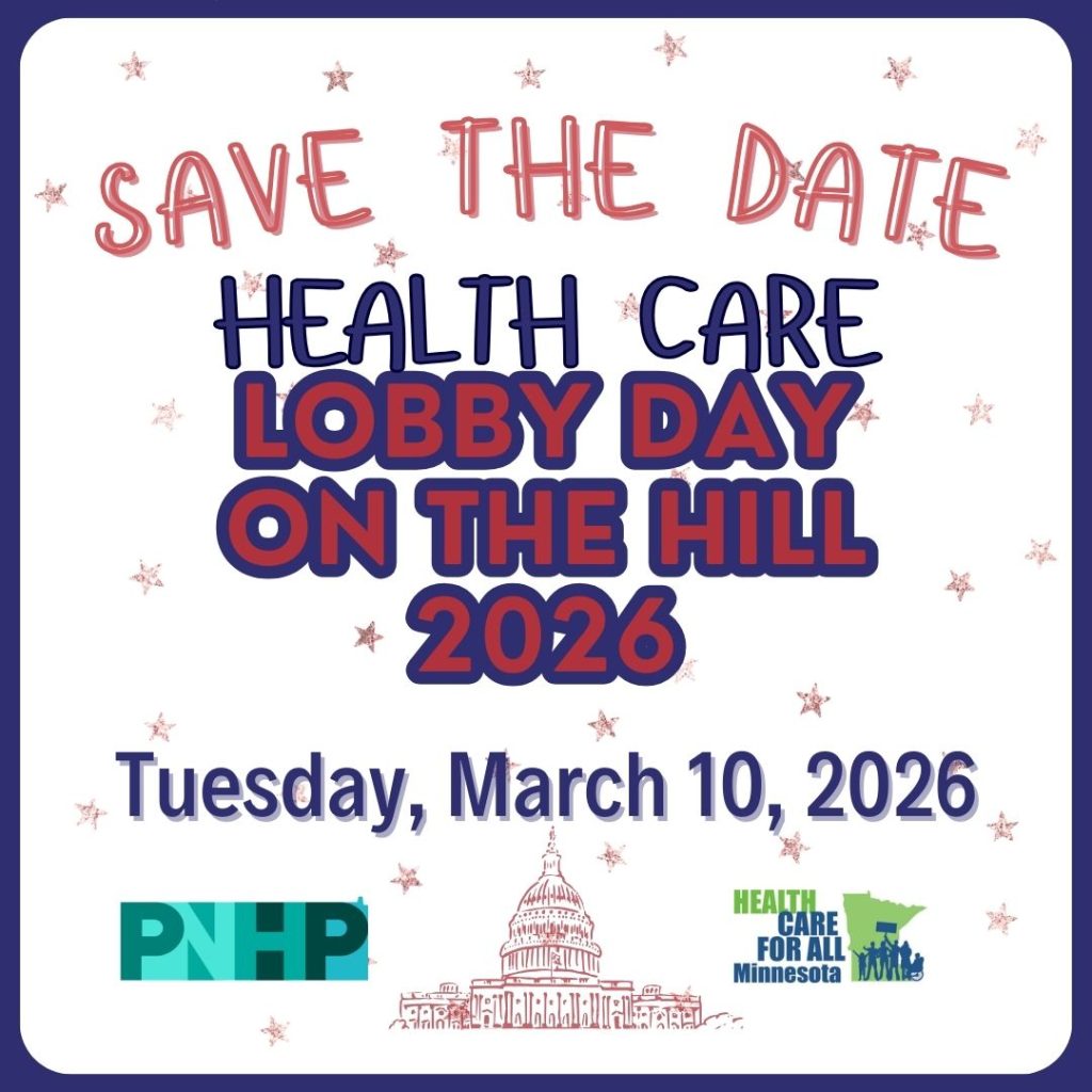 Health Care Lobby Day on the Hill 2026 is sponsored by PNHP-MN and Health Care for All Minnesota (HCA-MN). All meeting arrangements and training will be provided to anyone who registers!